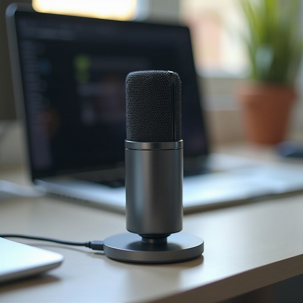 توصيل الميكروفون الخاص بك: ابدأ بتوصيل الميكروفون الخاص بك بطريقة آمنة بالمنفذ USB المناسب على جهاز MacBook. تأكد من أن الاتصال قوي ومستقر.